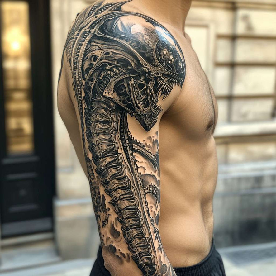 When choosing a biomechanical tattoo, working with an experienced artist is essential. Their expertise ensures the design’s realism and precision, resulting in a tattoo that stands out for its creativity and craftsmanship.
