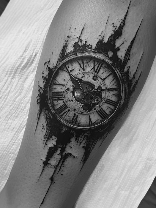 For a modern twist, broken clock tattoos represent the idea of stopping time or cherishing a specific moment. These designs often feature shattered glass, disjointed gears, or halted hands, creating a dynamic and visually striking piece. Broken clock tattoos are ideal for those who want to convey a sense of resilience or transformation.