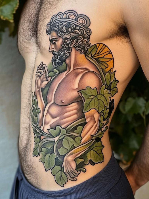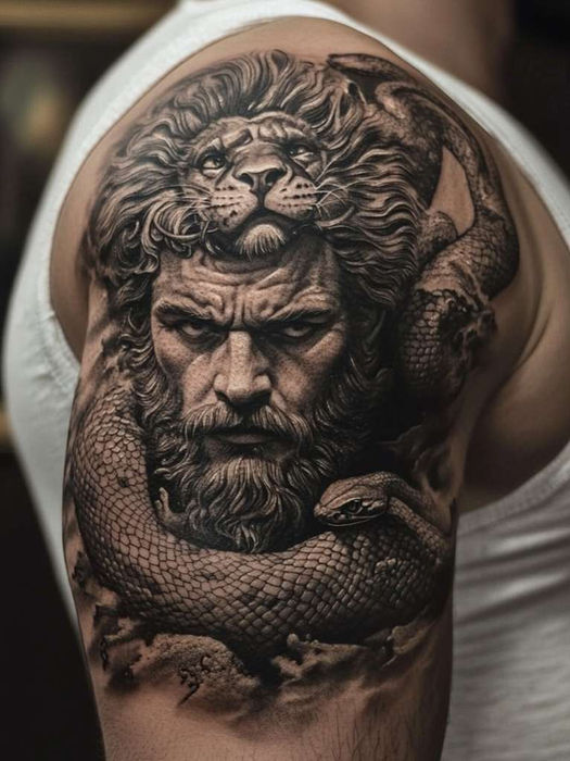 One of the most popular sources of inspiration is Greek mythology. Tattoos featuring gods and goddesses like Zeus, Athena, or Poseidon symbolise power, wisdom, and mastery of the elements. These designs often include intricate details, such as flowing robes, lightning bolts, or tridents, to capture the essence of these deities.