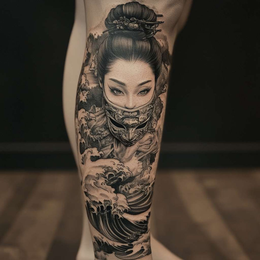 Creating a Japanese leg tattoo requires exceptional skill and expertise. Traditional Japanese tattooing follows specific stylistic rules, including bold outlines, rich colours, and detailed shading. Collaborating with a tattoo artist experienced in Irezumi ensures the design is authentic and executed with precision.