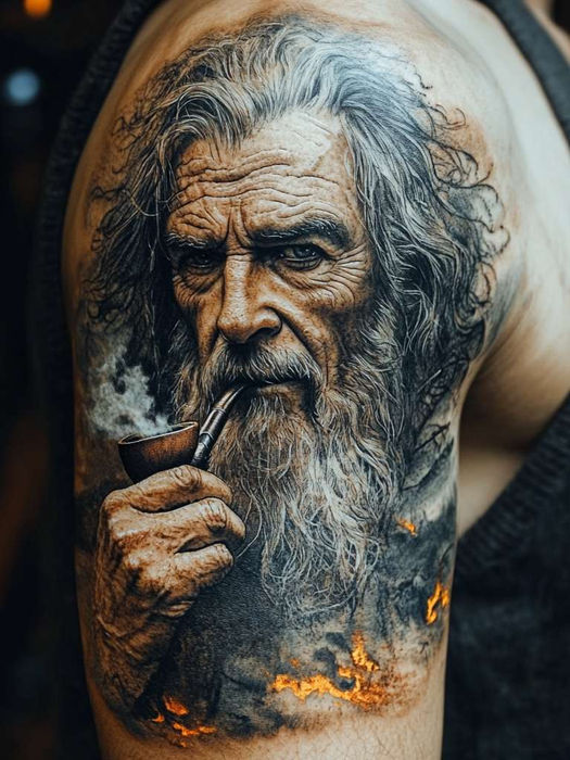 For those drawn to the story's characters, portraits of figures like Gandalf, Aragorn, or Legolas capture the essence of heroism and adventure. These detailed tattoos require a skilled artist to portray the likeness and depth of the characters, often incorporating elements like weapons or emblems associated with them.
