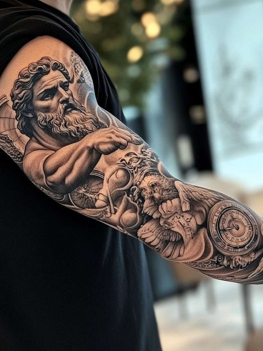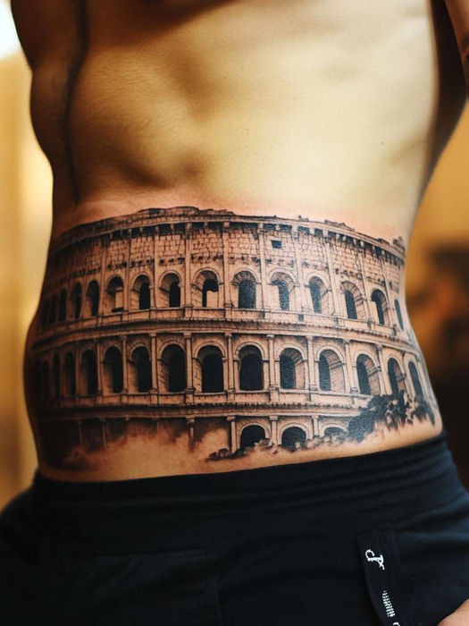 Architectural elements from ancient Rome, such as the Colosseum or aqueducts, can serve as impressive tattoo subjects. These designs not only showcase the grandeur of Roman engineering but also celebrate the civilisation’s enduring influence on modern architecture.
