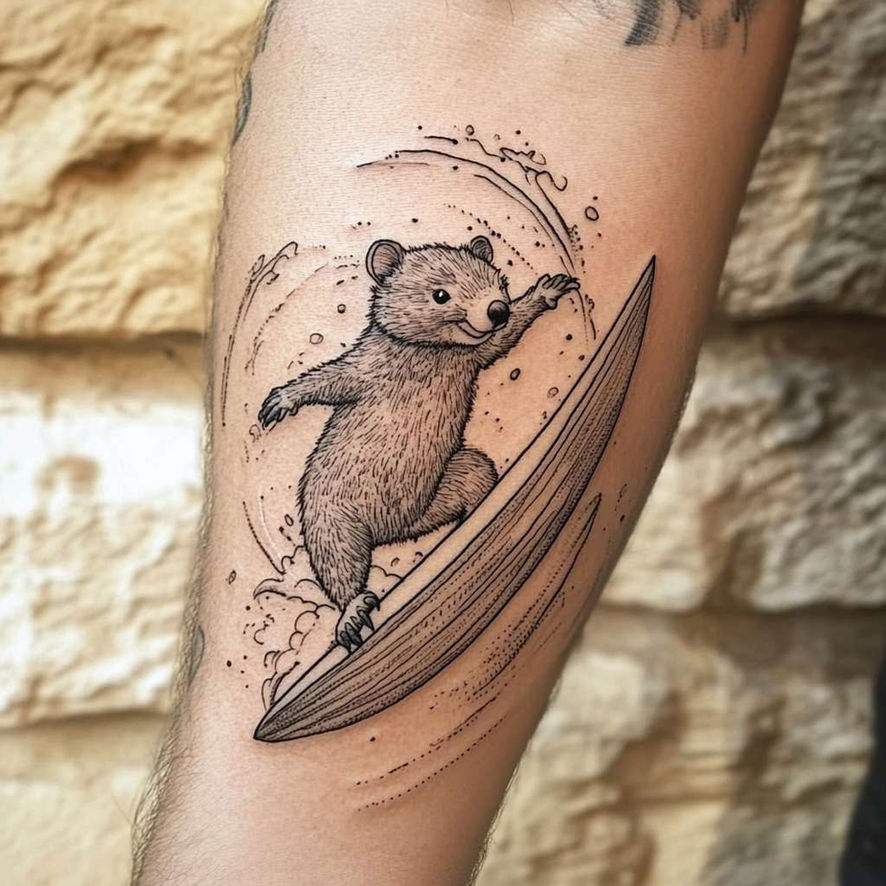 Ocean life offers endless inspiration for surf tattoos. Dolphins, turtles, and sharks are often featured, as they are closely associated with the sea. These designs can be stylised or realistic, depending on your preference. Additionally, elements like the sun setting over the water or palm trees swaying in the breeze can add a tropical vibe to your tattoo.
